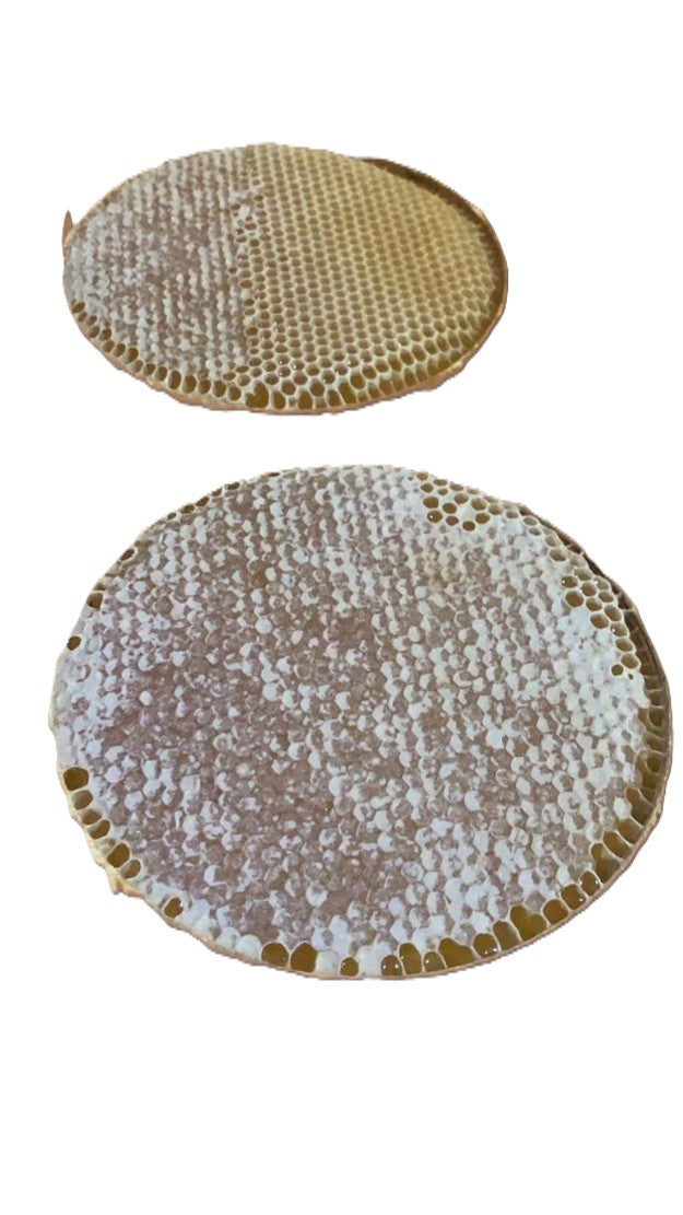 Chew like gum to enjoy both honey and beeswax.